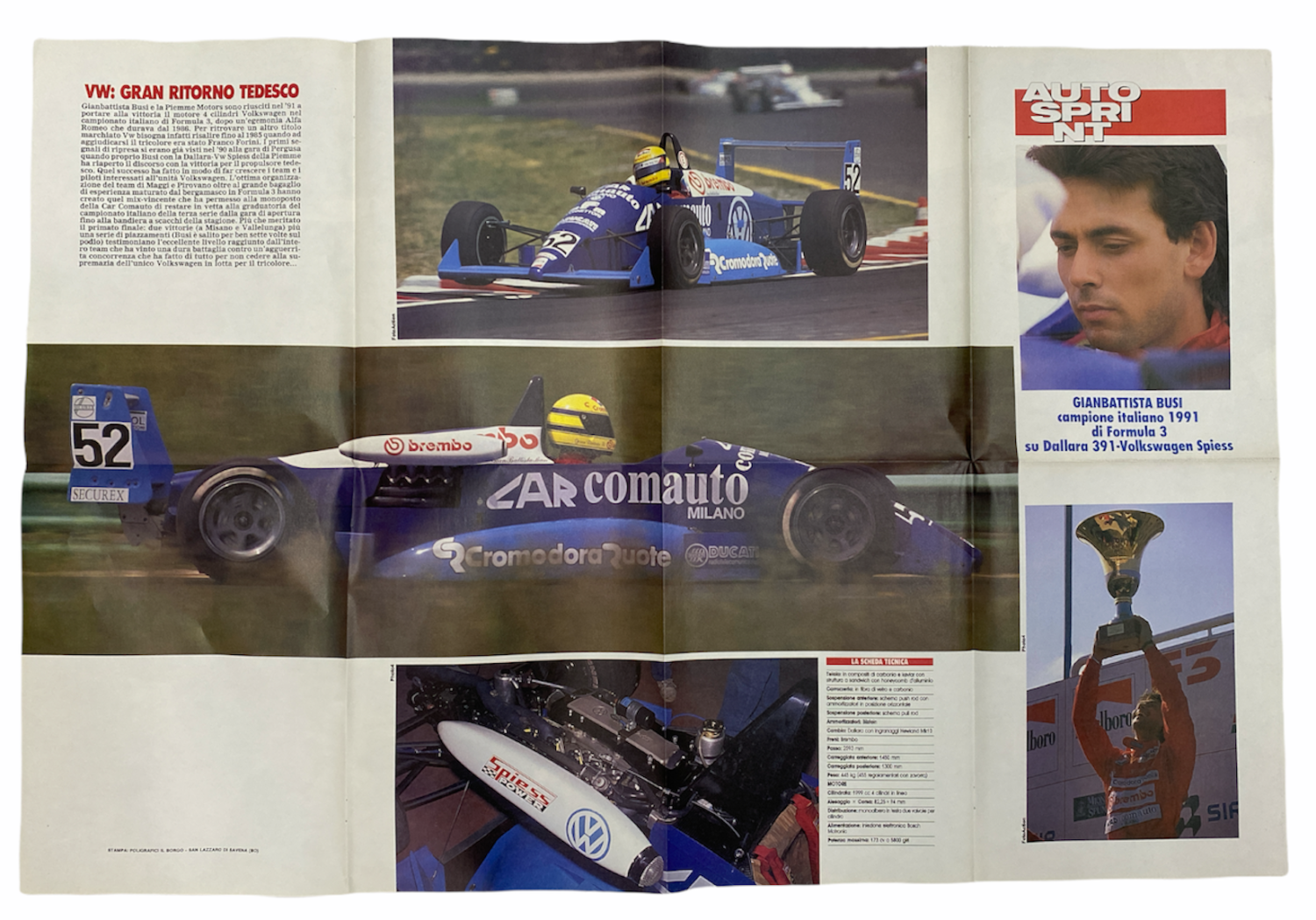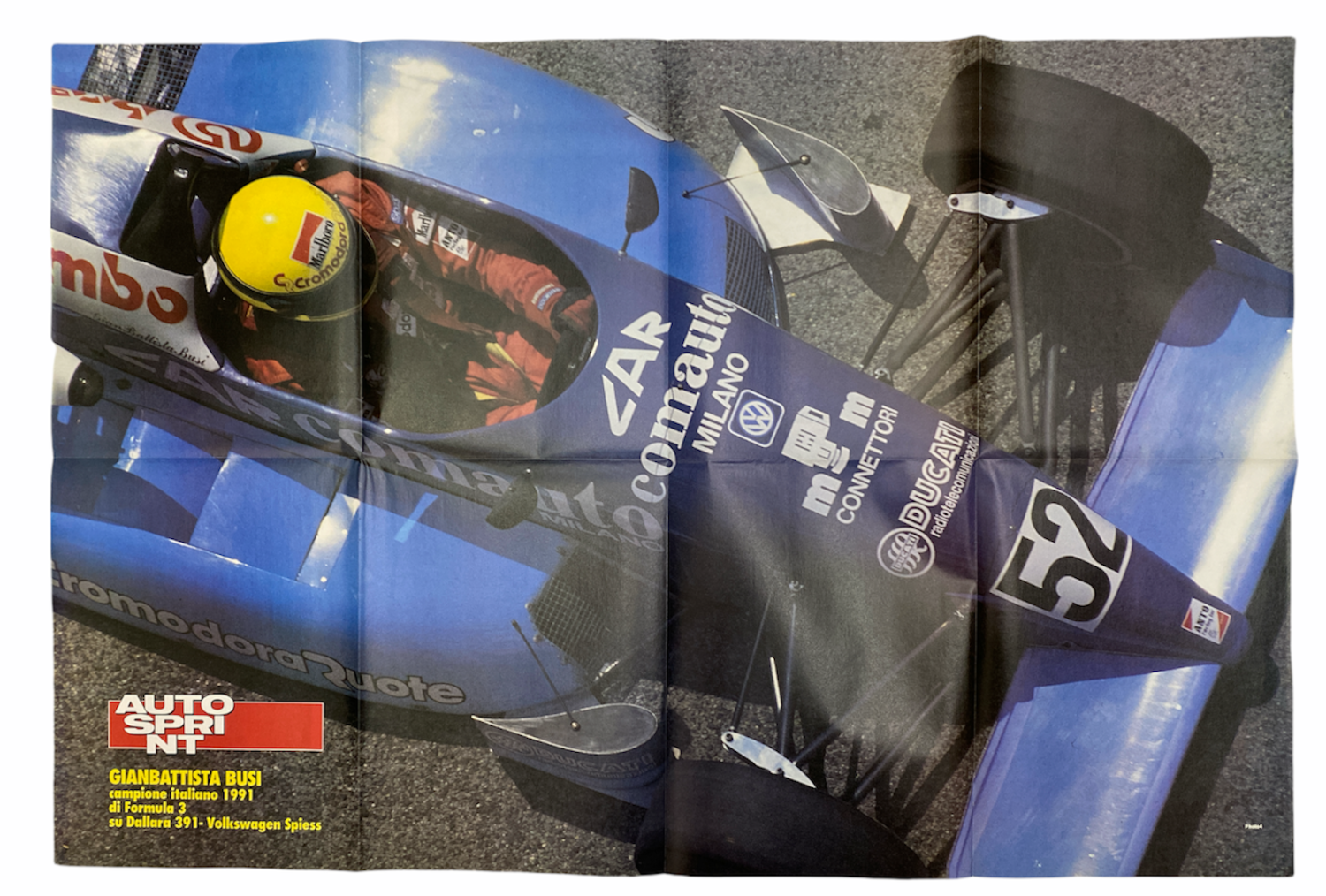 Poster Gianbattista Busi campione italiano 1991 Formula 3 Dallara 391- Volkswagen Spiess Autosprint 53×80 cm