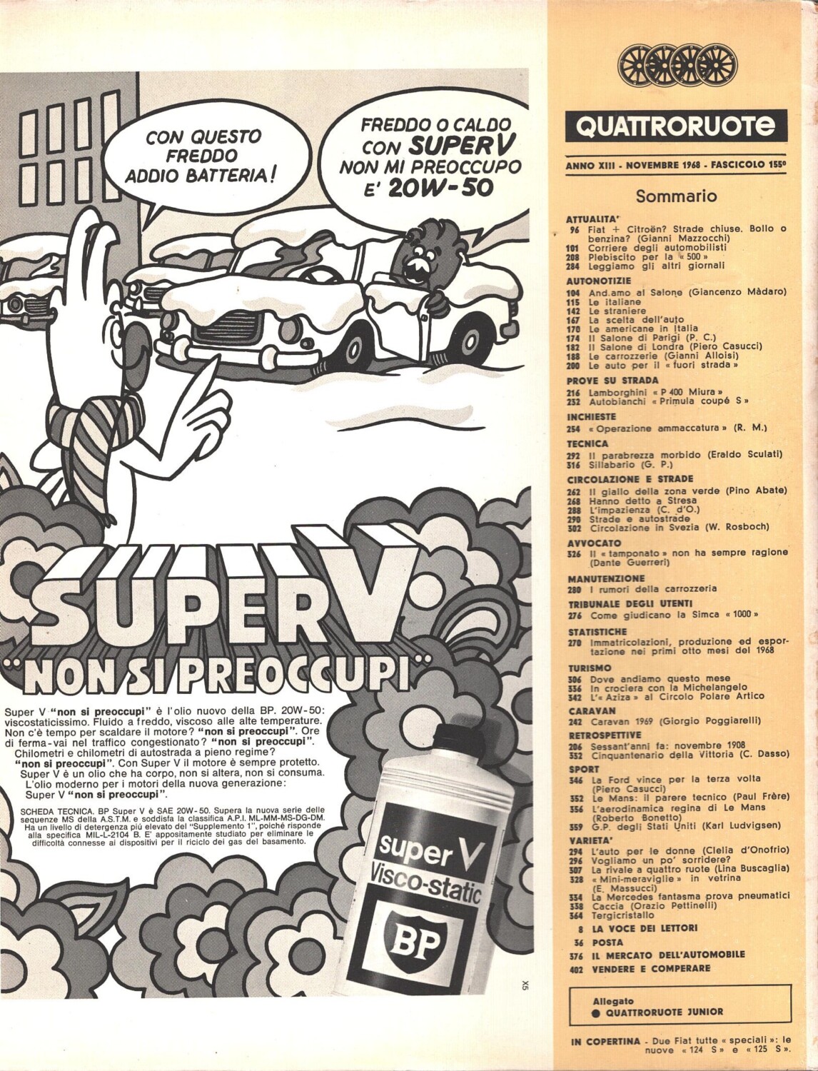 | Titolo: | Rivista Quattroruote n. 155 – Novembre 1968 ed. Domus |