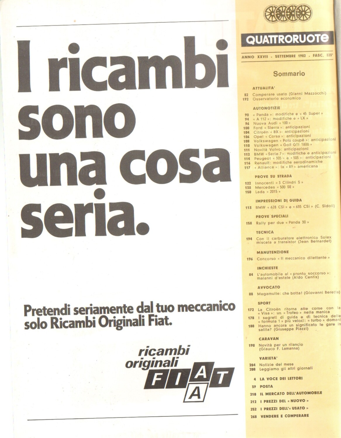 | Titolo: | Quattroruote n. 323 Settembre 1982 – Mercedes 500SE, Lada 1300cc, Mini |