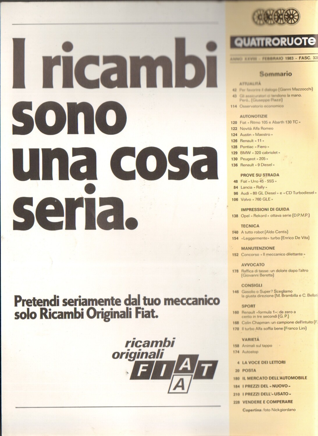 | Titolo: | Quattroruote n. 328 Febbraio 1983 – Leyland Maestro, Renault 11, Peugeot 205 |