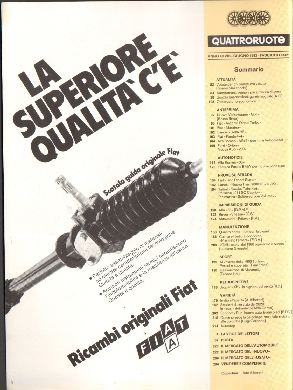 | Titolo: | Quattroruote n. 332 Giugno 1983 – Lancia Trevi, Porsche 911SC Cabrio, Talbot |