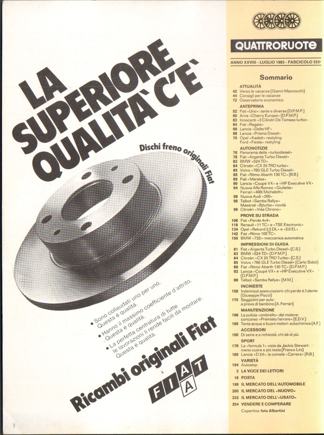 | Titolo: | Quattroruote n. 333 Luglio 1983 – Renault 11, Fiat Ritmo 105 TC, Oper Rekord |