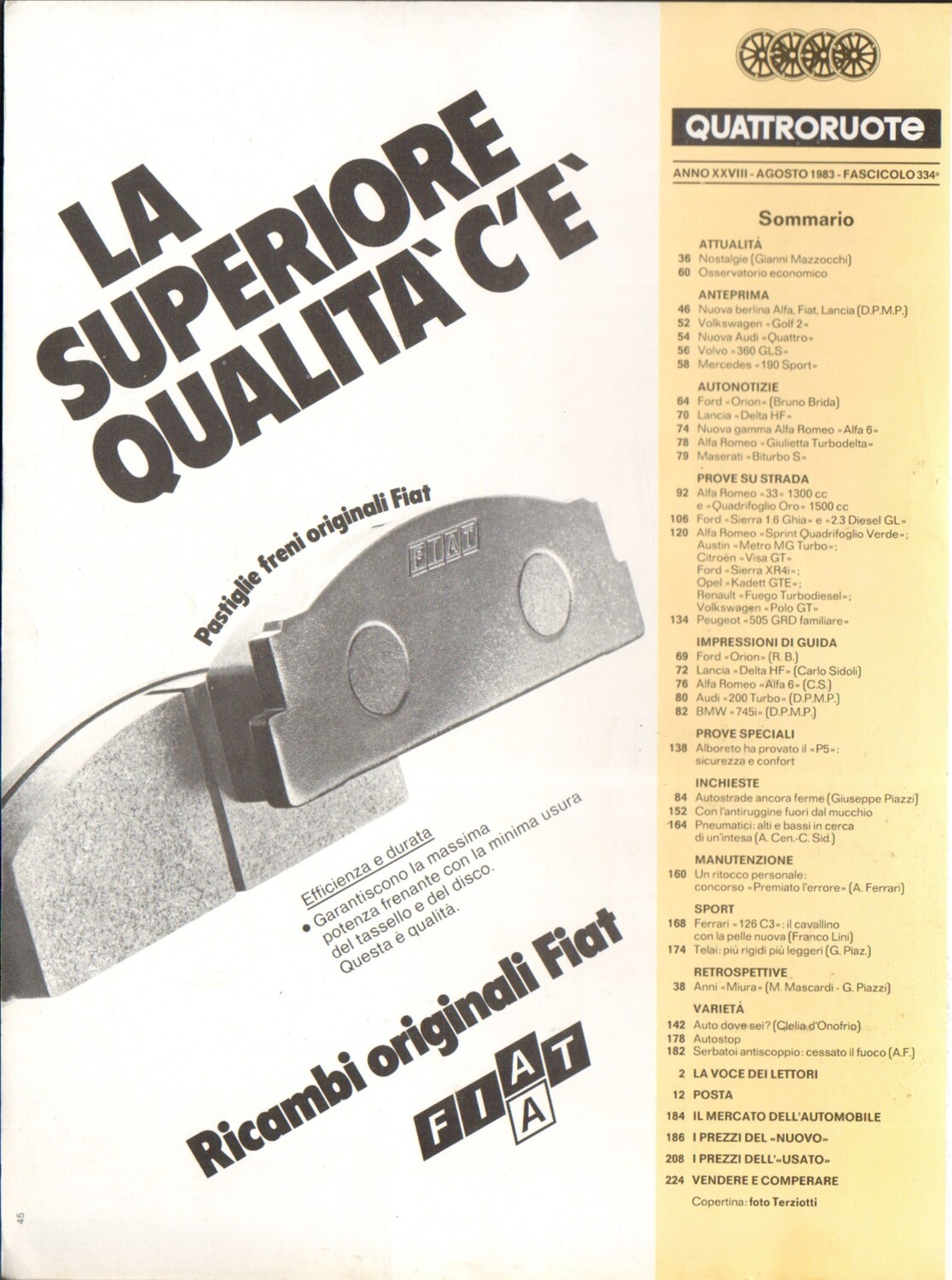 | Titolo: | Quattroruote n. 334 Agosto 1983 – Alfa 33, Ford Sierra, Visa GT, Sierra XR4i |