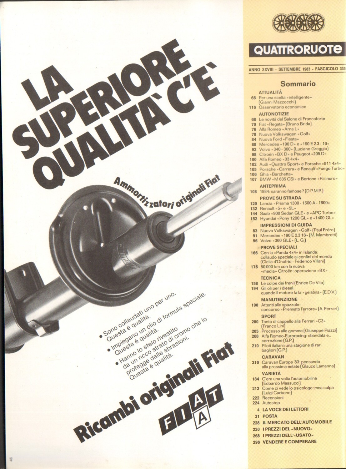 | Titolo: | Quattroruote n. 335 Settembre 1983 – Lancia Prisma, Renault 5, Saab 900 GLE |