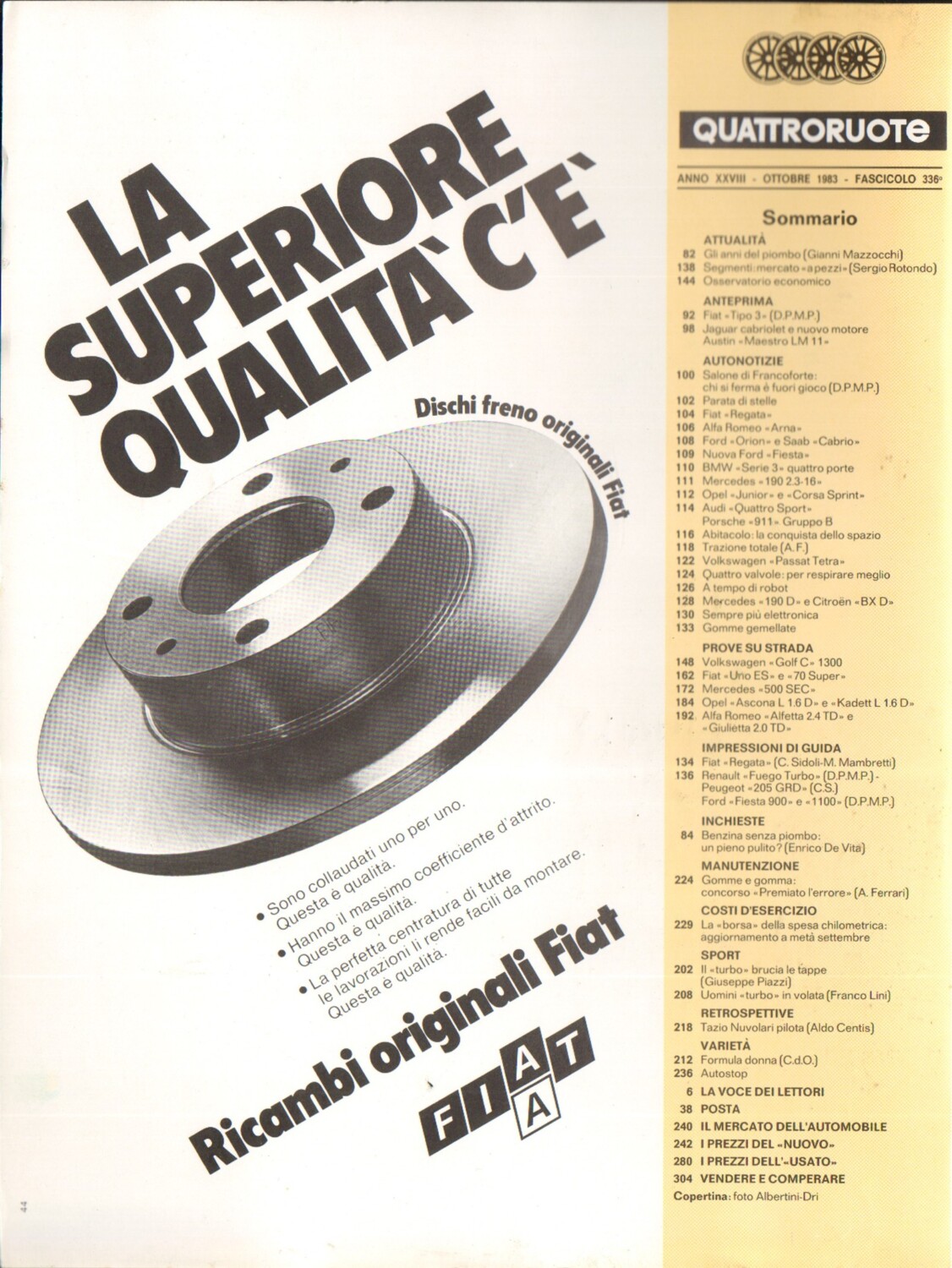 | Titolo: | Quattroruote n. 336 Ottobre 1983 – Fiat Uno Energy, Opel Kadett, Ascona |