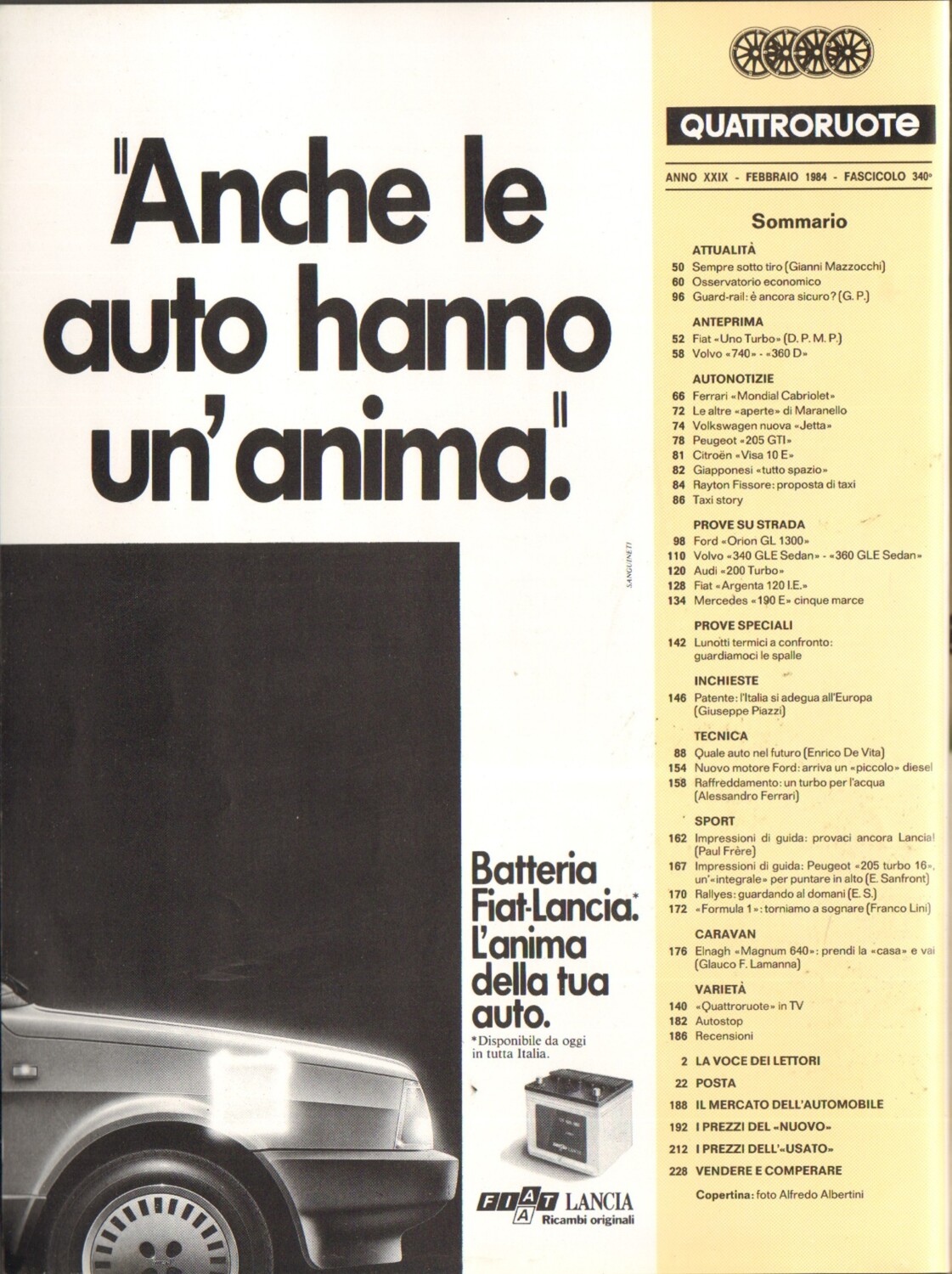 | Titolo: | Quattroruote n. 340 Febbraio 1984 – Ford Orion, Fiat Argenta, Mercedes 190 |