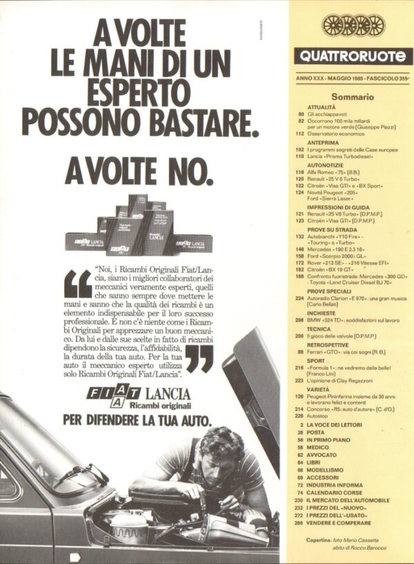 | Titolo: | Quattroruote n. 355 Maggio 1985 – Autobianchi Y10 Fire Touring Turbo, Ford Scorpio |