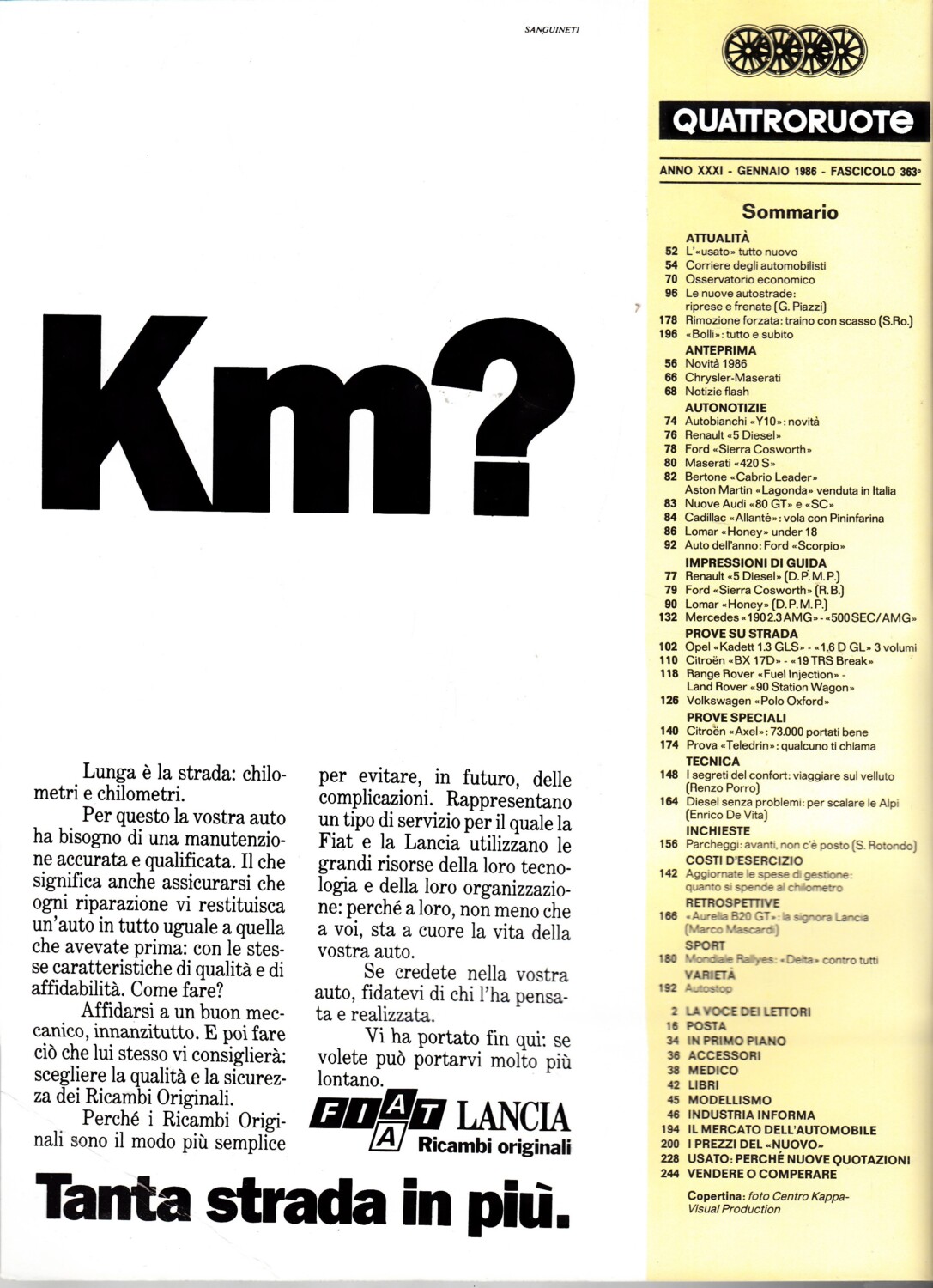 | Titolo: | Quattroruote n. 363 Gennaio 1986 – Opel Kadett, Citroen BX, Land Rover |
