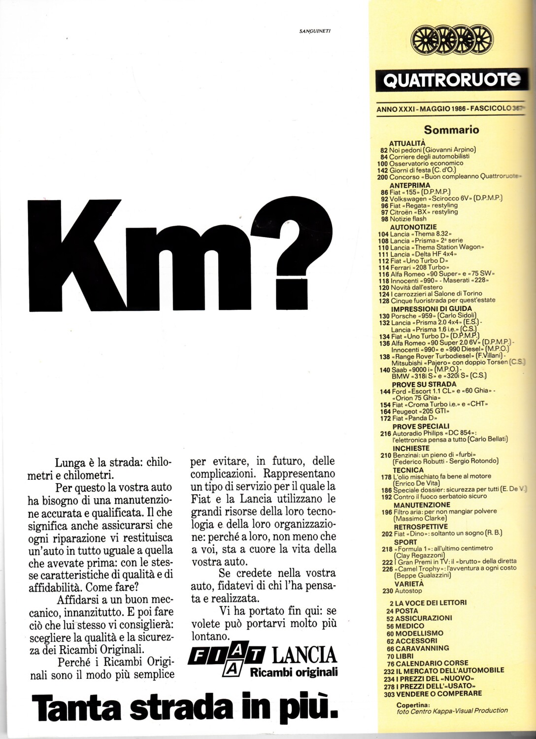| Titolo: | Quattroruote n. 367 Maggio 1986 – Fiat Panda, Fiat Croma 2.0 CHT, Ford Escort |