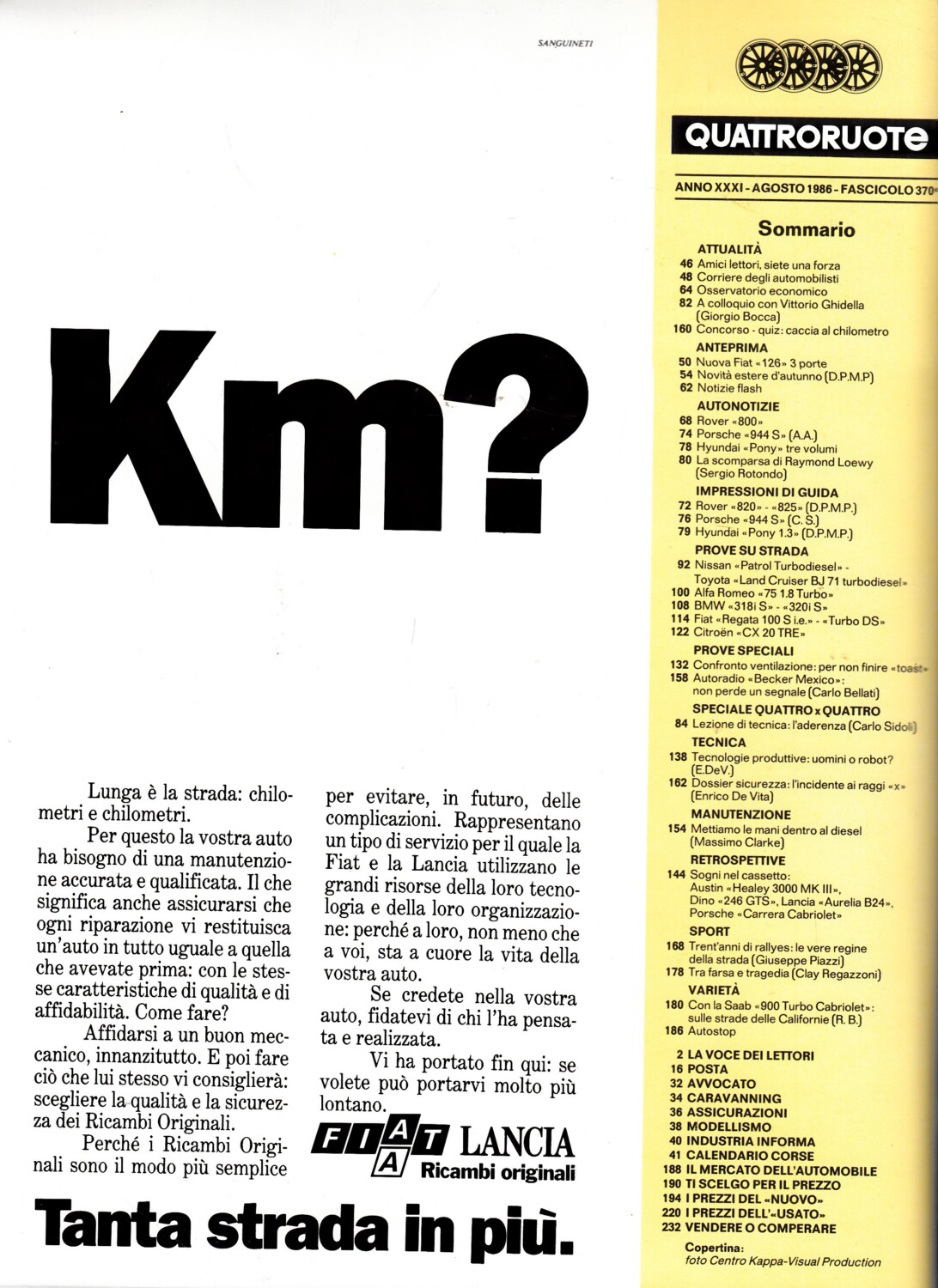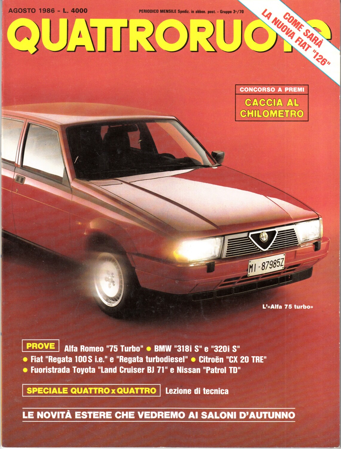 | Titolo: | Quattroruote n. 370 Agosto 1986 – Alfa Romeo, BMW 318i, Fiat Regata, Toyota |