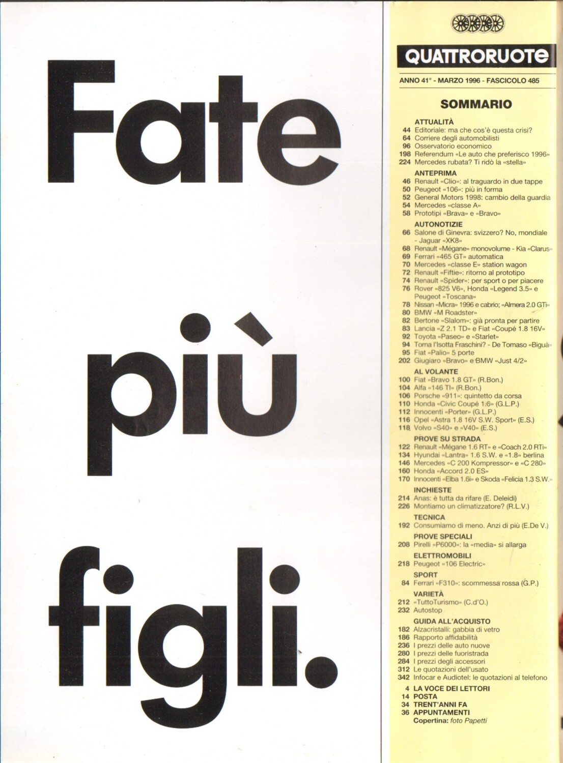 | Titolo: | Quattroruote n. 485 Marzo 1996 – Ferrari F1, Clio, Peugeot 106 |