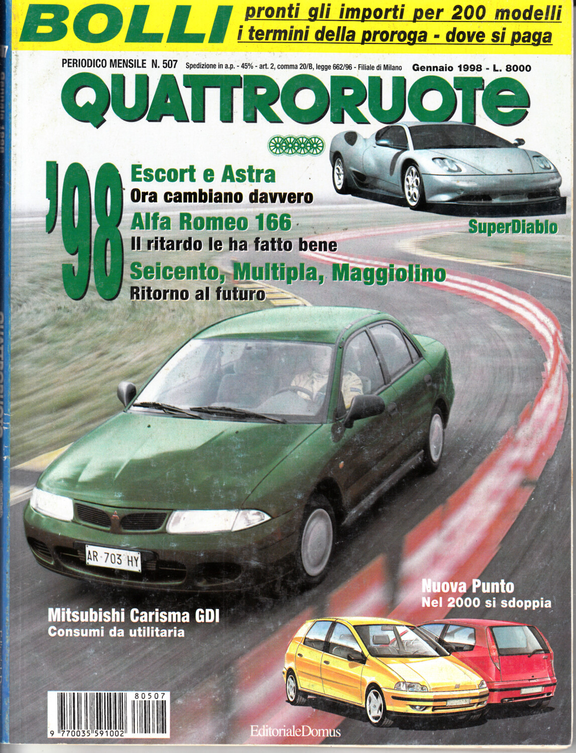 | Titolo: | Quattroruote n. 507 Gennaio 1998 – Ferrari F355 F1, Porsche 911 Carrera, Toyota RAV |