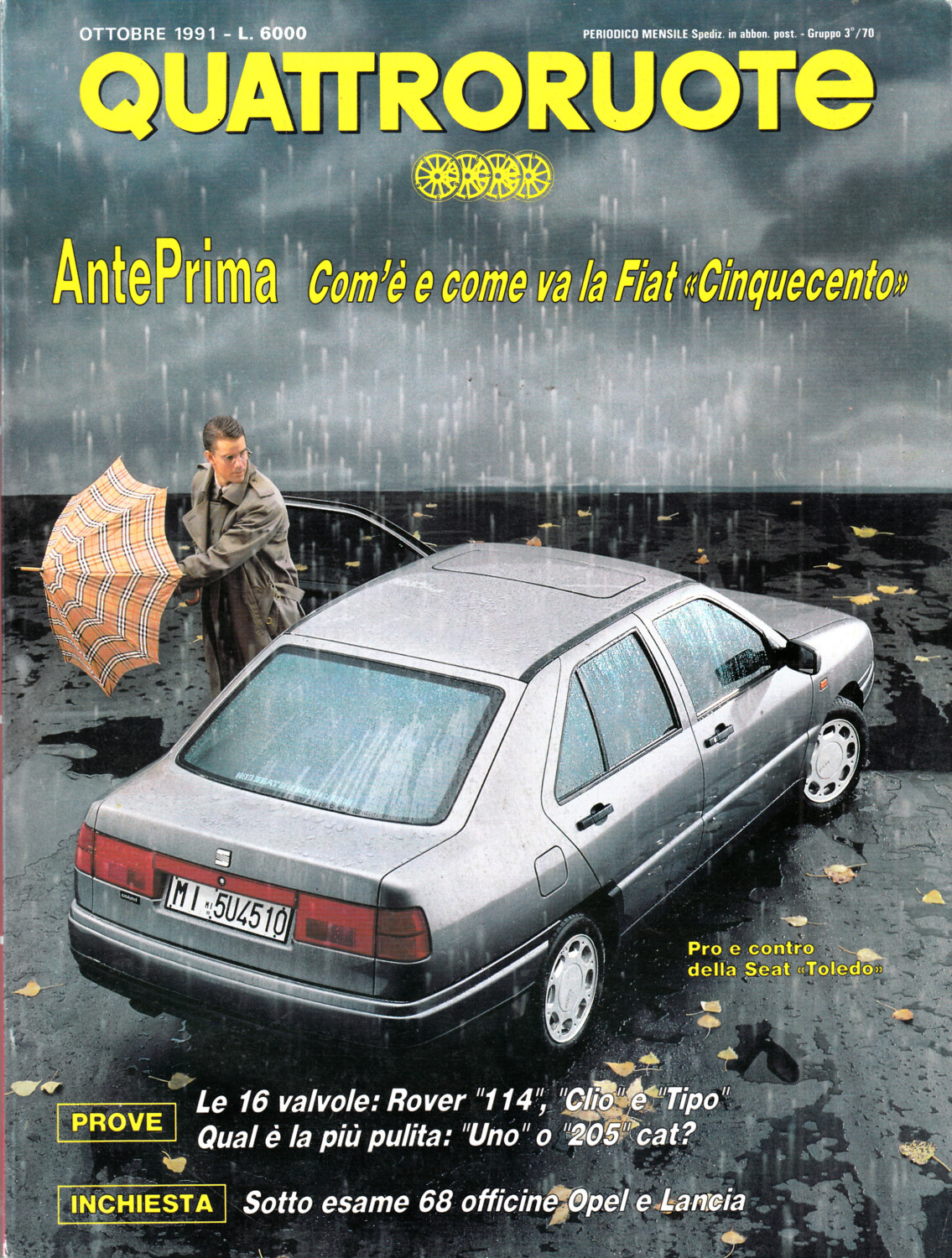 Quattroruote n. 432 Ottobre 1991 – Rover 114, Clio, Tipo, Uno, Seat Toledo