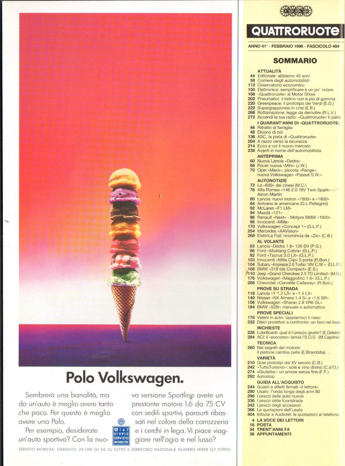 | Titolo: | Quattroruote n. 484 Febbraio 1996 con Allegato Volkswagen Sharan |