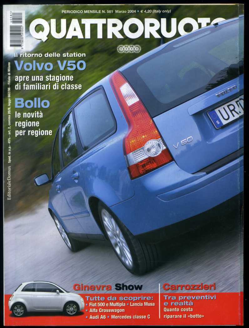 | Titolo: | Quattroruote n. 581 Marzo 2004 – Volvo V50, Fiat 500, Alfa Crosswagon |