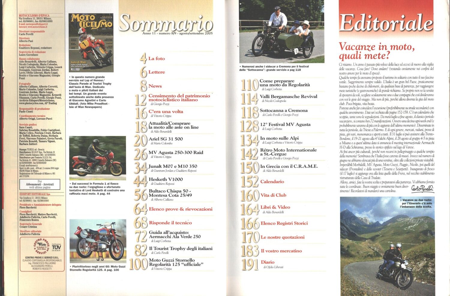 | Titolo: | Rivista Motociclismo d’Epoca n. 8-9 – Agosto Settembre 2005 ed. Edisport |