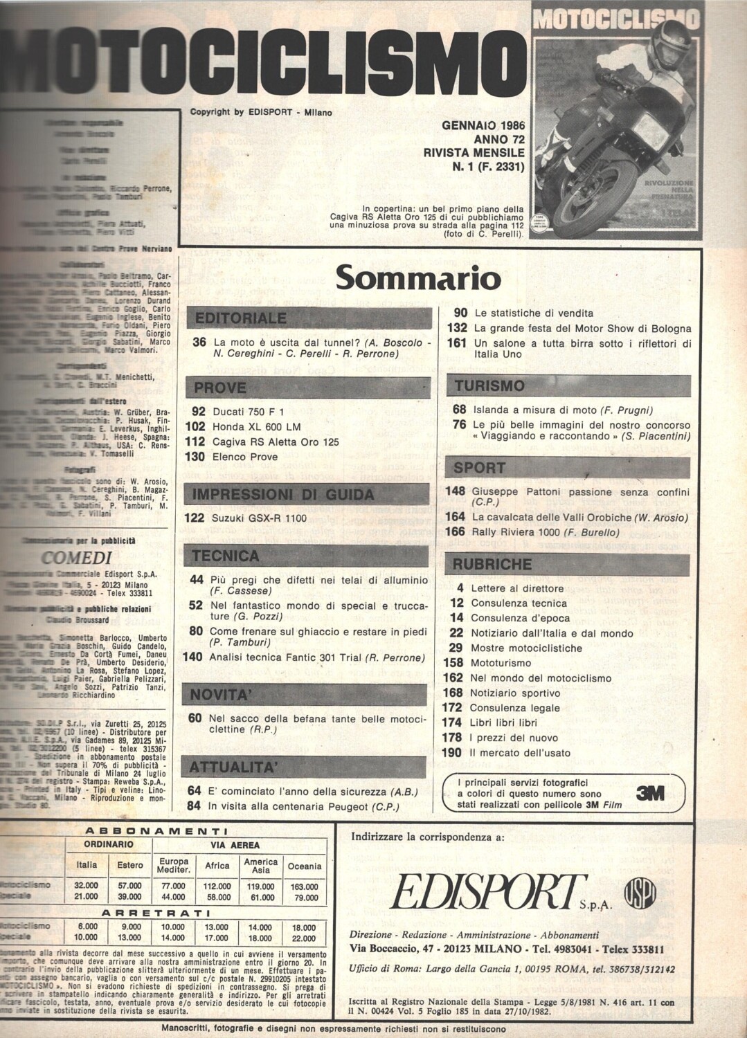 | Titolo: | Rivista Motociclismo n. 1 – Gennaio 1986 ed. Edisport |