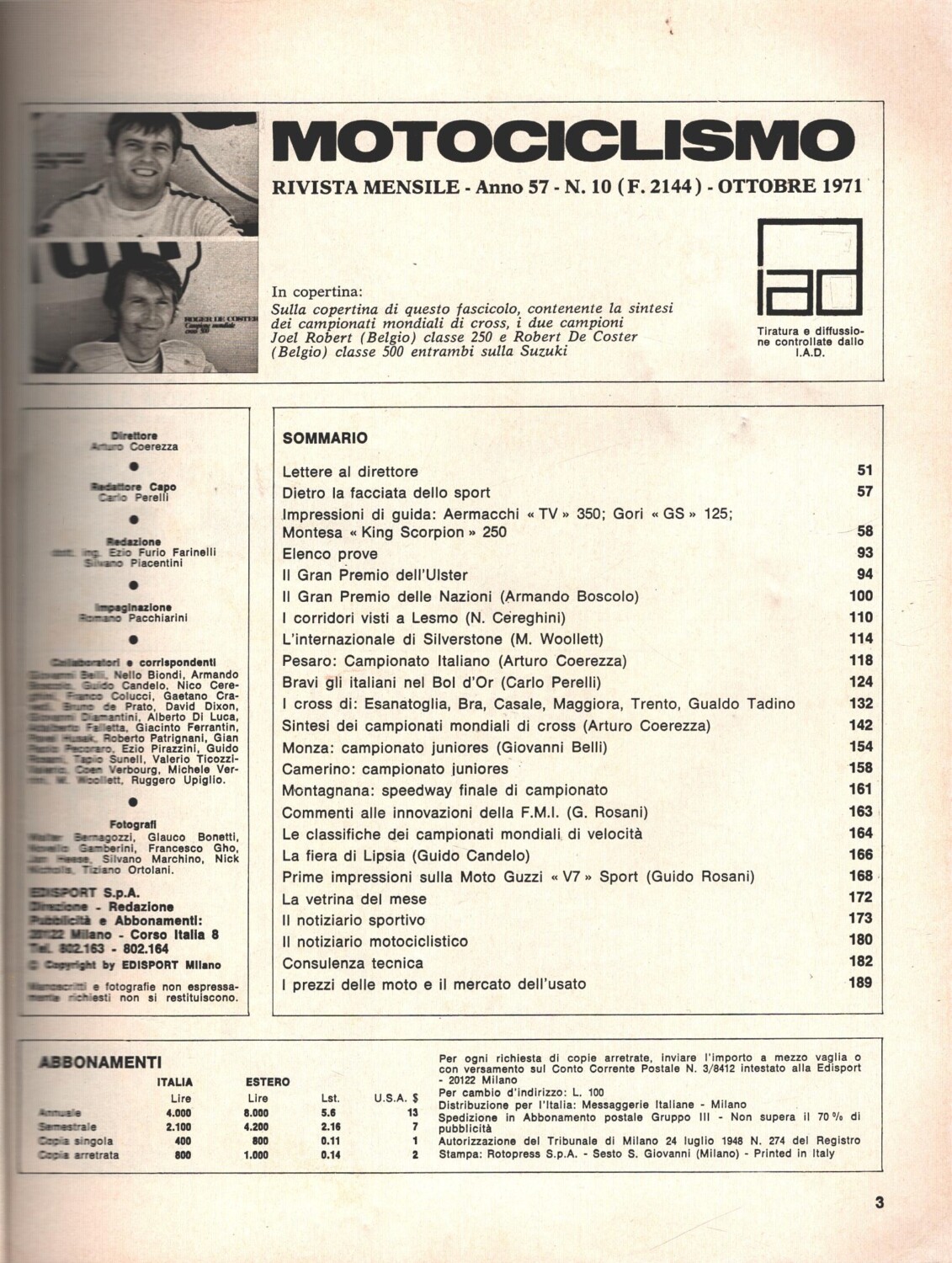 | Titolo: | Rivista Motociclismo n. 10 – Ottobre 1971 ed. Edisport |