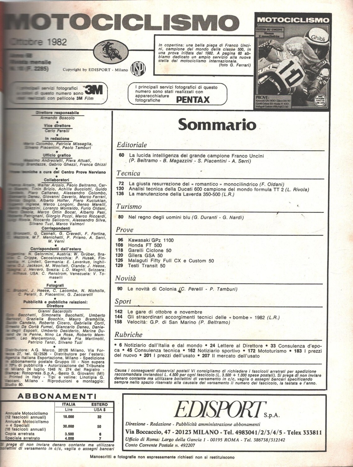 Rivista Motociclismo n. 10 – Ottobre 1982 ed. Edisport