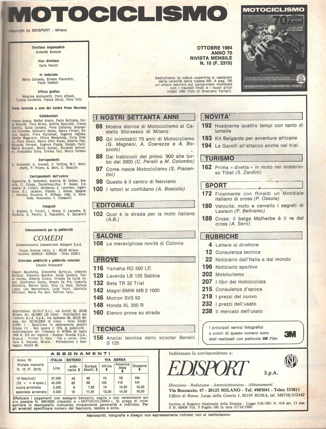| Titolo: | Rivista Motociclismo n. 10 – Ottobre 1984 ed. Edisport |