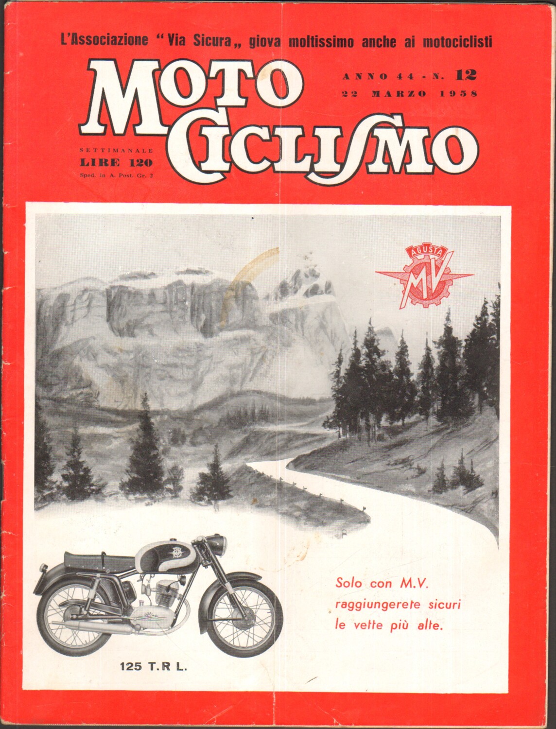 | Titolo: | Rivista Motociclismo n. 12 del 22 Marzo 1958 ed. Edisport – MV Augusta 125 T.R.L. |