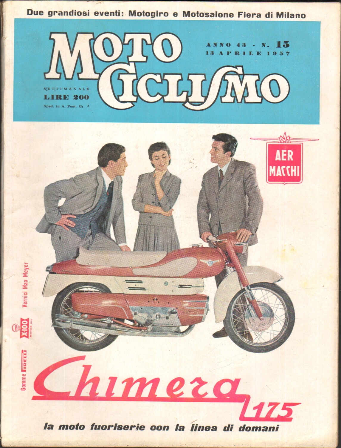 | Titolo: | Rivista Motociclismo n. 15 del 13 Aprile 1957 ed. Edisport – Chimera 175 |