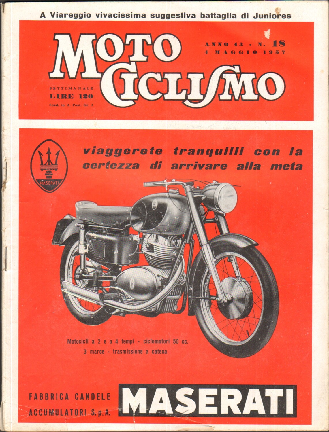| Titolo: | Rivista Motociclismo n. 18 del 1 Maggio 1957 ed. Edisport – Maserati |