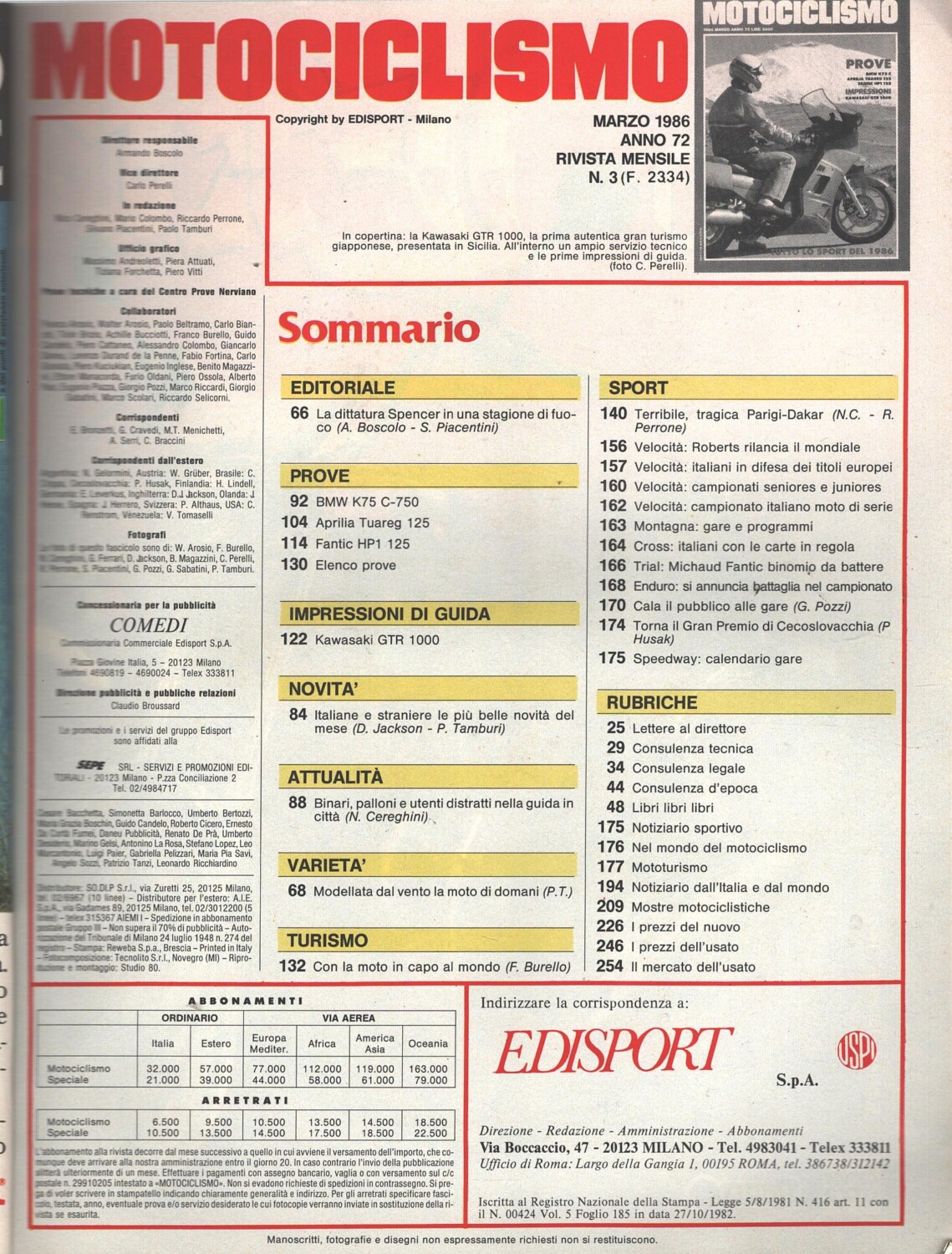 | Titolo: | Rivista Motociclismo n. 3 – Marzo 1986 ed. Edisport |
