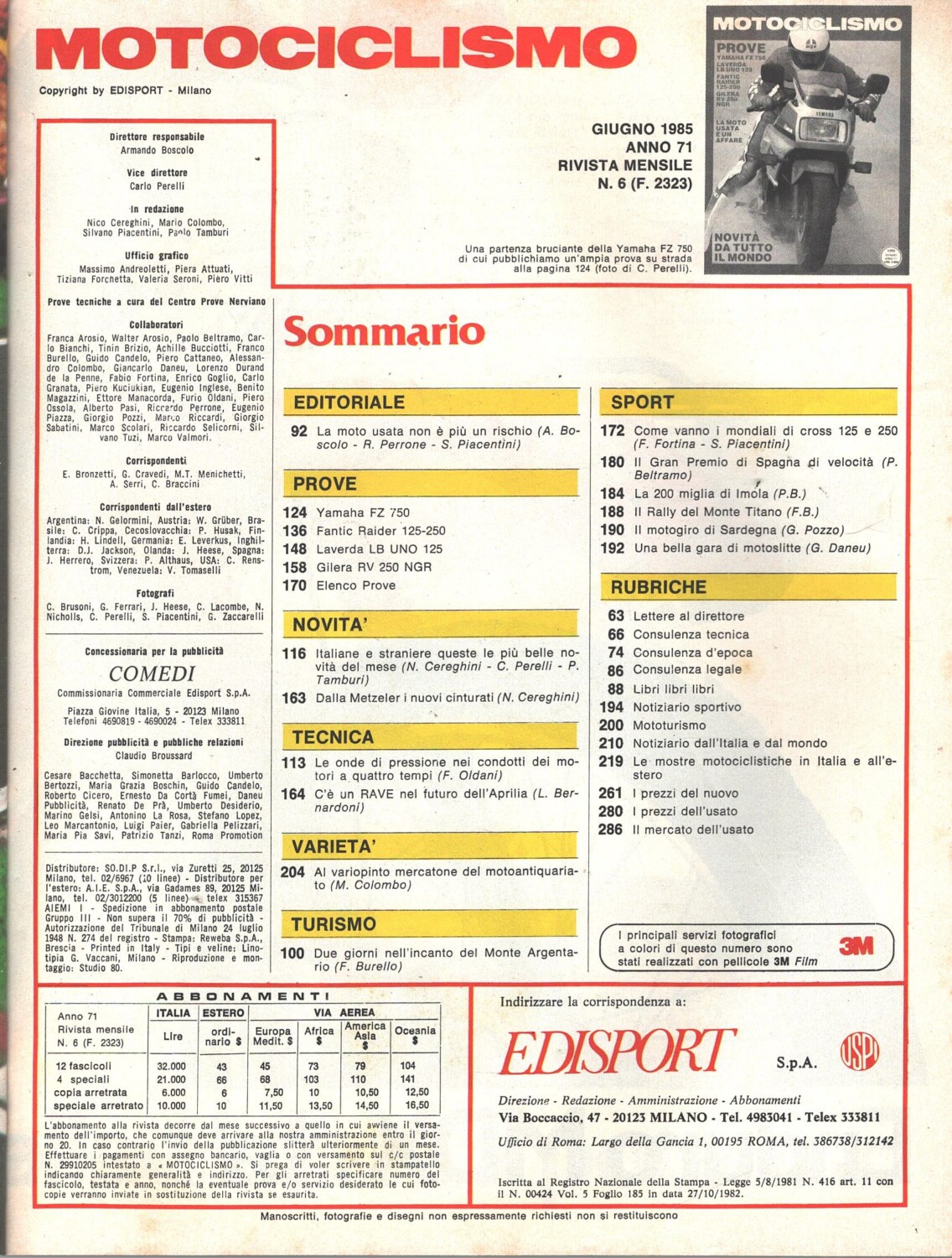 | Titolo: | Rivista Motociclismo n. 6 – Giugno 1985 ed. Edisport |