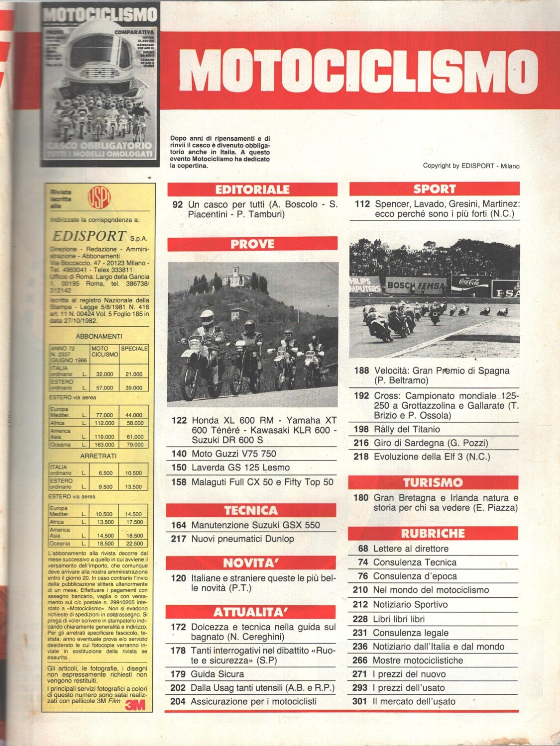 | Titolo: | Rivista Motociclismo n. 6 – Giugno 1986 ed. Edisport |