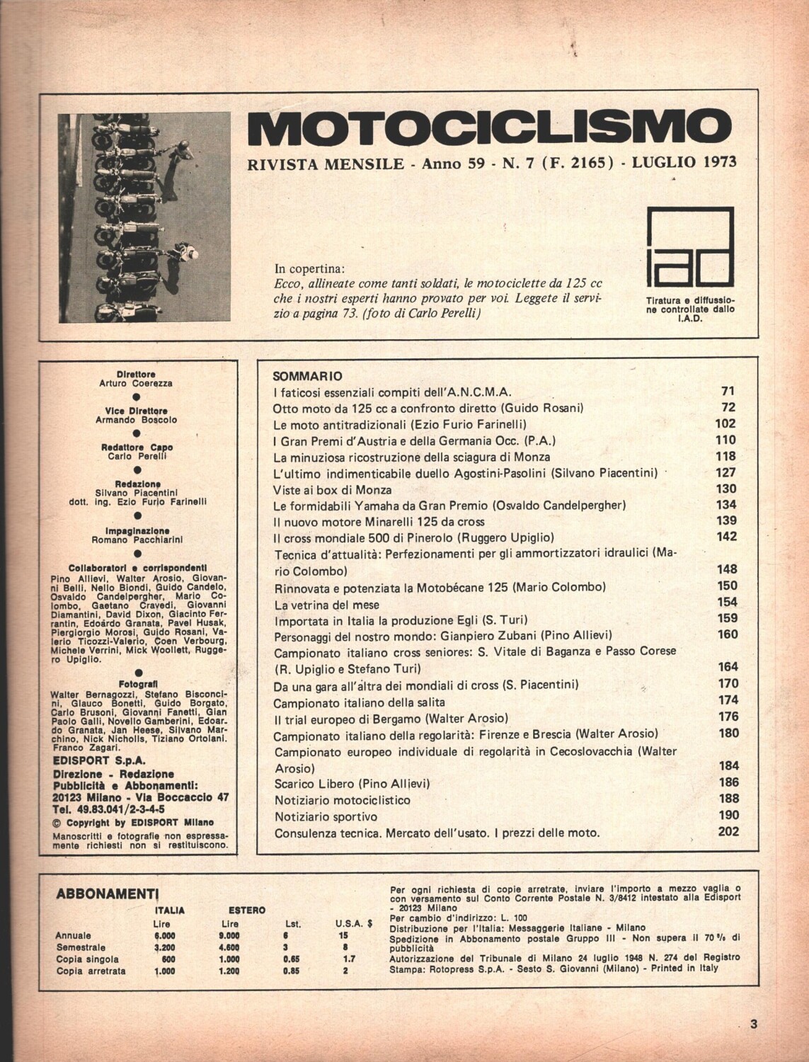 | Titolo: | Rivista Motociclismo n. 7 – Luglio 1973 ed. Edisport |