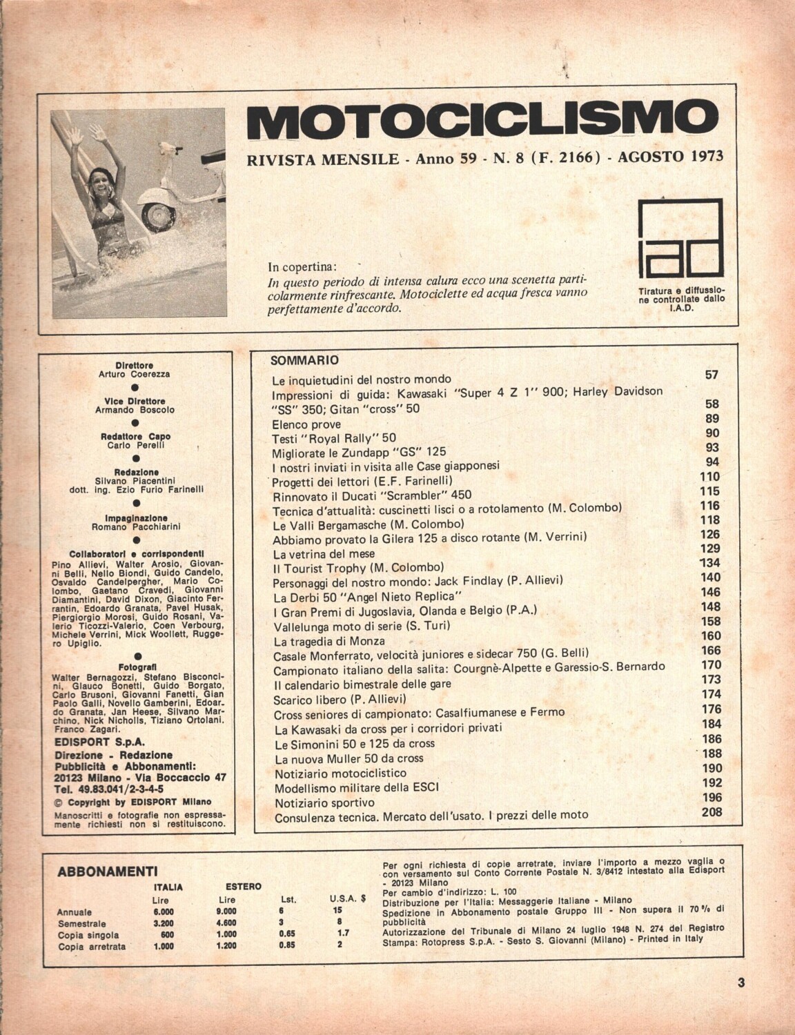 | Titolo: | Rivista Motociclismo n. 8 – Agosto 1973 ed. Edisport |