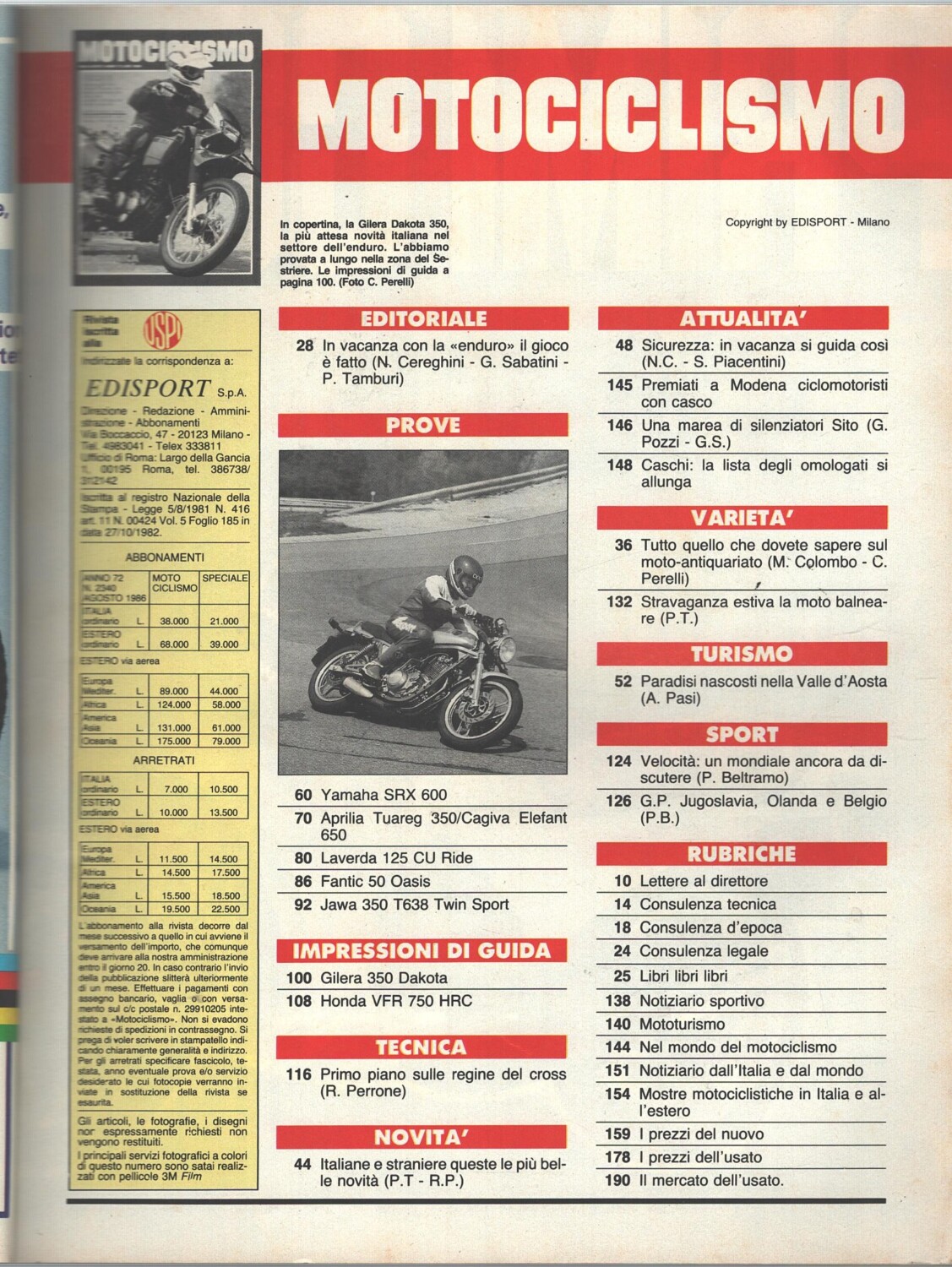 | Titolo: | Rivista Motociclismo n. 8 – Agosto 1986 ed. Edisport |