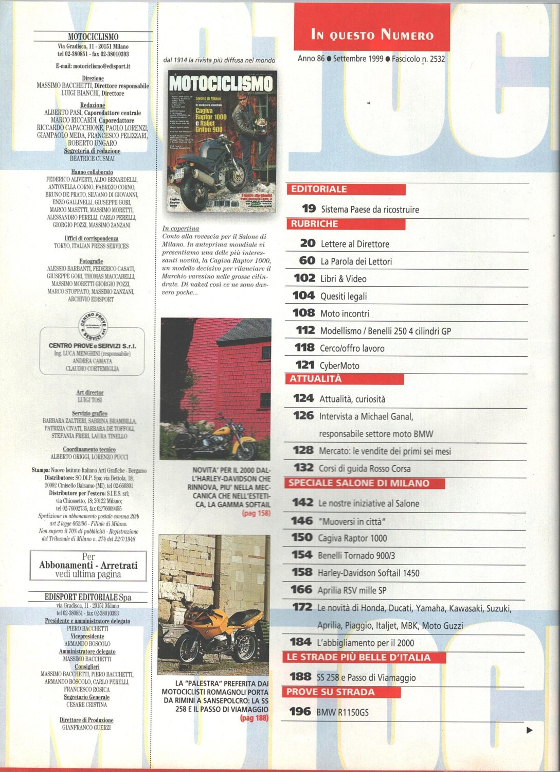 | Titolo: | Rivista Motociclismo n. 9 – Settembre 1999 ed. Edisport |