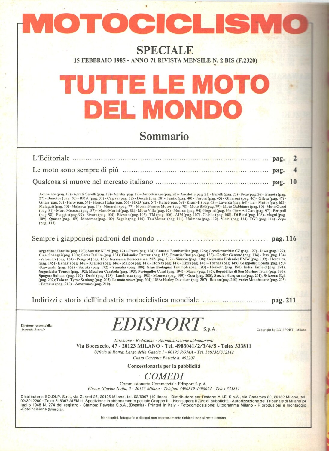 | Titolo: | Rivista Motociclismo Speciale n. 1 – Febbraio 1985 – Tutte le moto del mondo ed. Edisport |