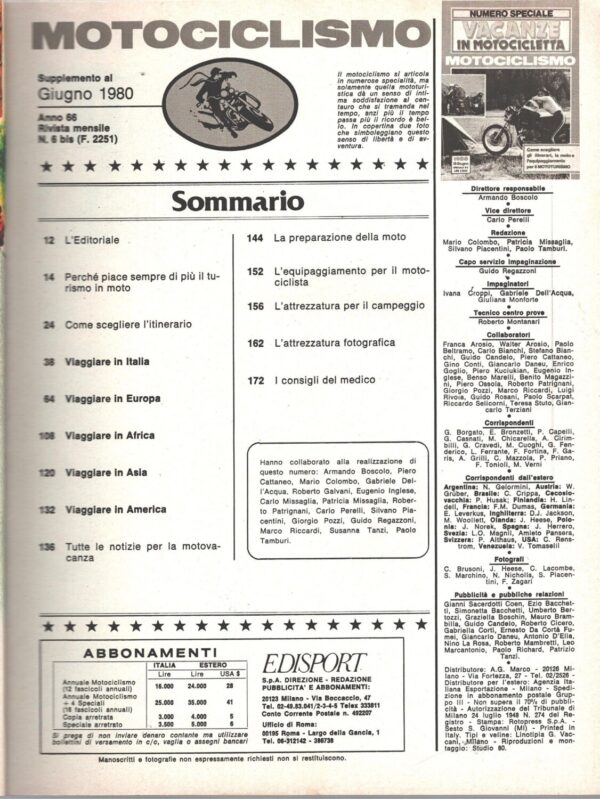 | Titolo: | Rivista Motociclismo Speciale n. 3 – Giugno 1980 – Vacanze in motocicletta ed. Edisport |
