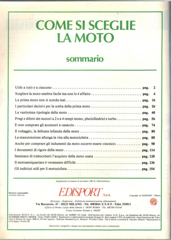 | Titolo: | Rivista Motociclismo Speciale n. 3 – Novembre 1983 – Come si sceglie la moto ed. Edisport |