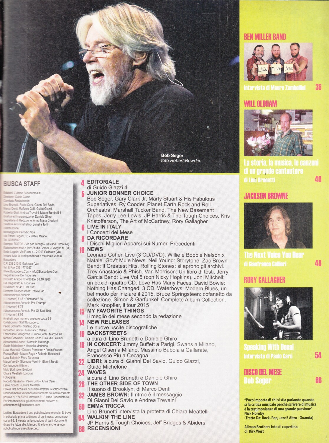 | Titolo: | Rivista Buscadero n. 372 – Novembre 2014. In copertina: Bob Seger |