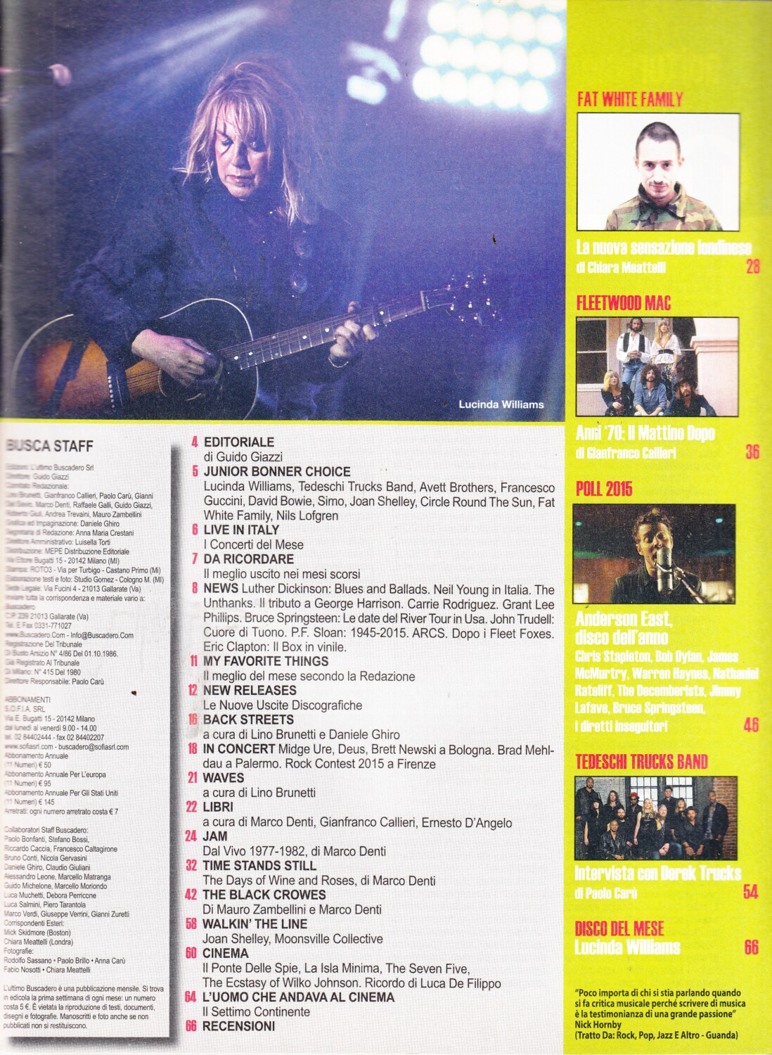 | Titolo: | Rivista Buscadero n. 385 – Gennaio 2016. In copertina: Lucinda Williams, Tedeschi Trucks Band |