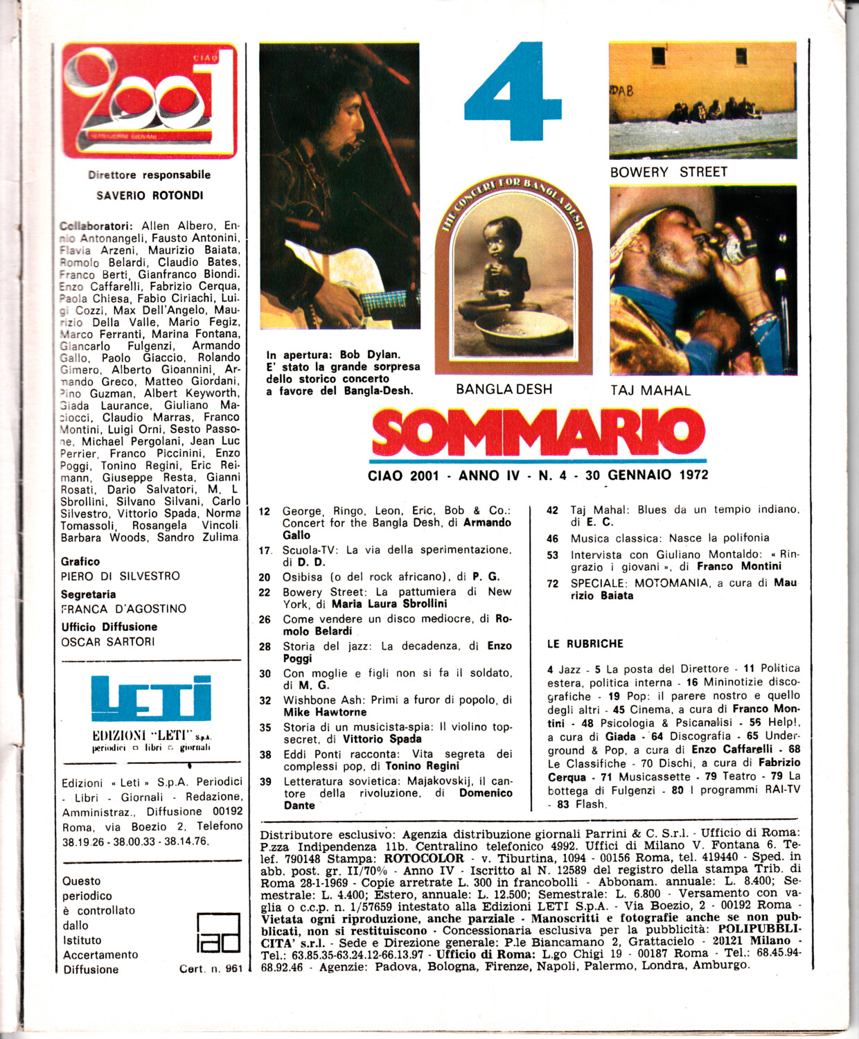 | Titolo: | Rivista Ciao 2001 Anno 1972 n. 4 del 30 Gennaio – In copertina Bob Dylan |