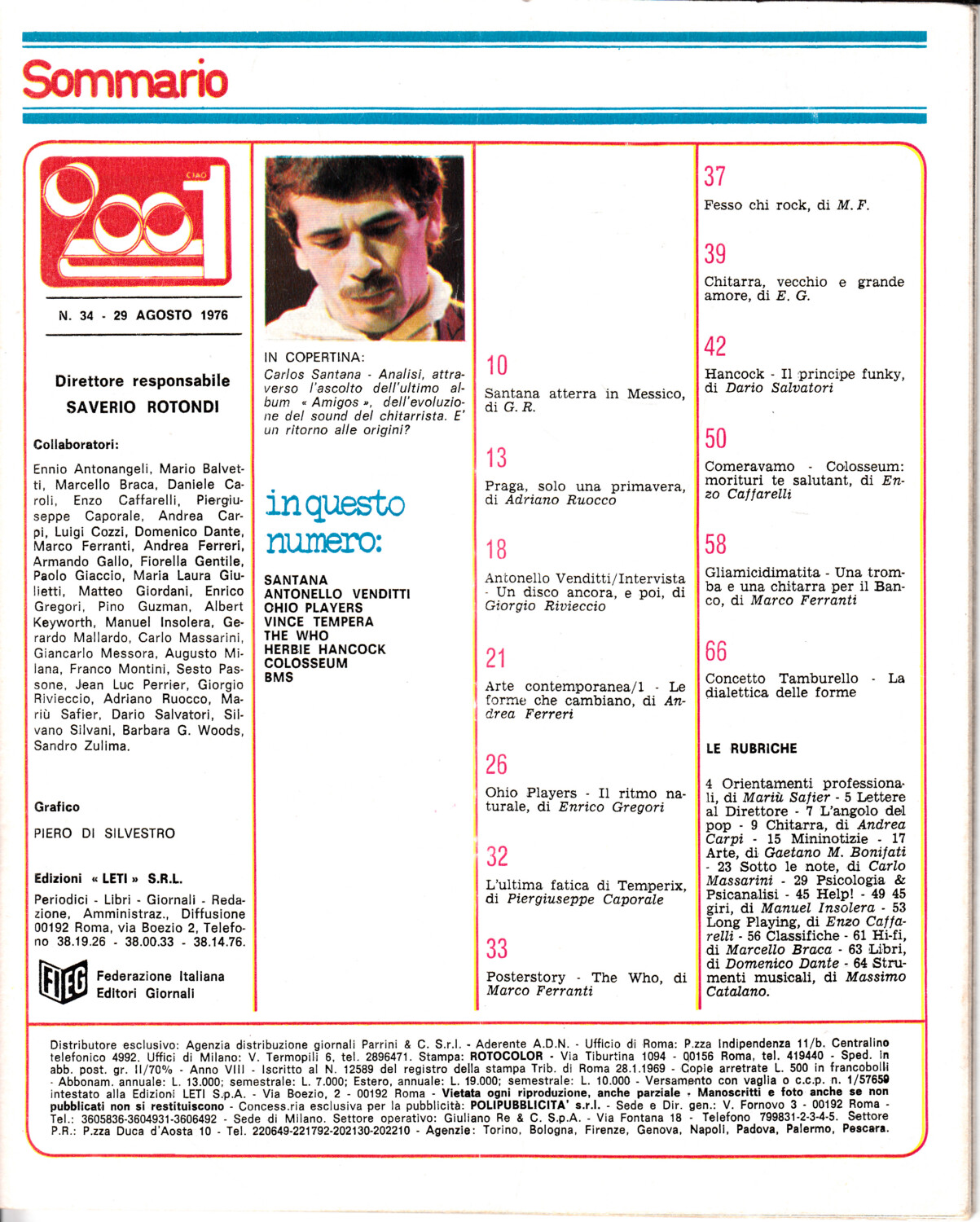 Rivista Ciao 2001 Anno 1976 n. 34 del 29 Agosto – In copertina Carlos Santana + Poster