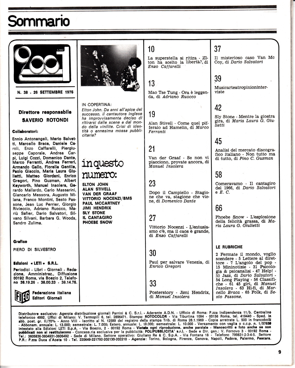 Rivista Ciao 2001 Anno 1976 n. 38 del 26 Settembre – In copertina Elton John + Poster
