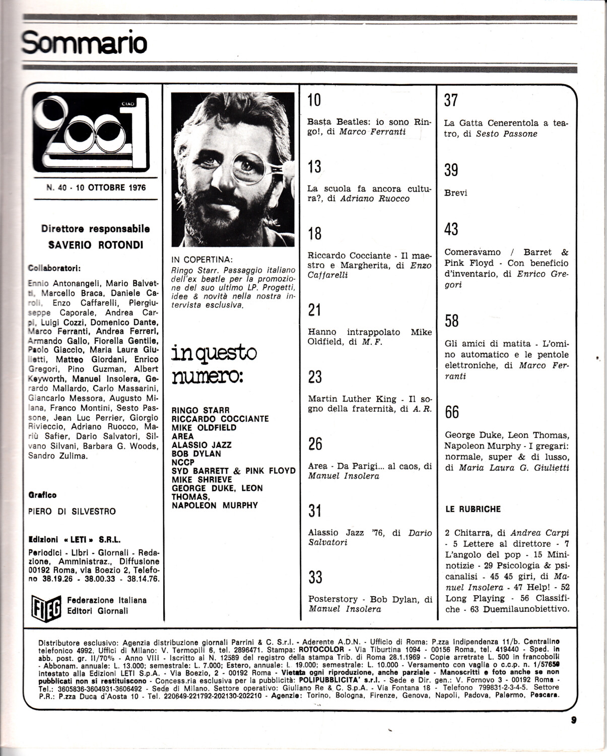 | Titolo: | Rivista Ciao 2001 Anno 1976 n. 40 del 10 Ottobre – In copertina Ringo Starr + Poster |