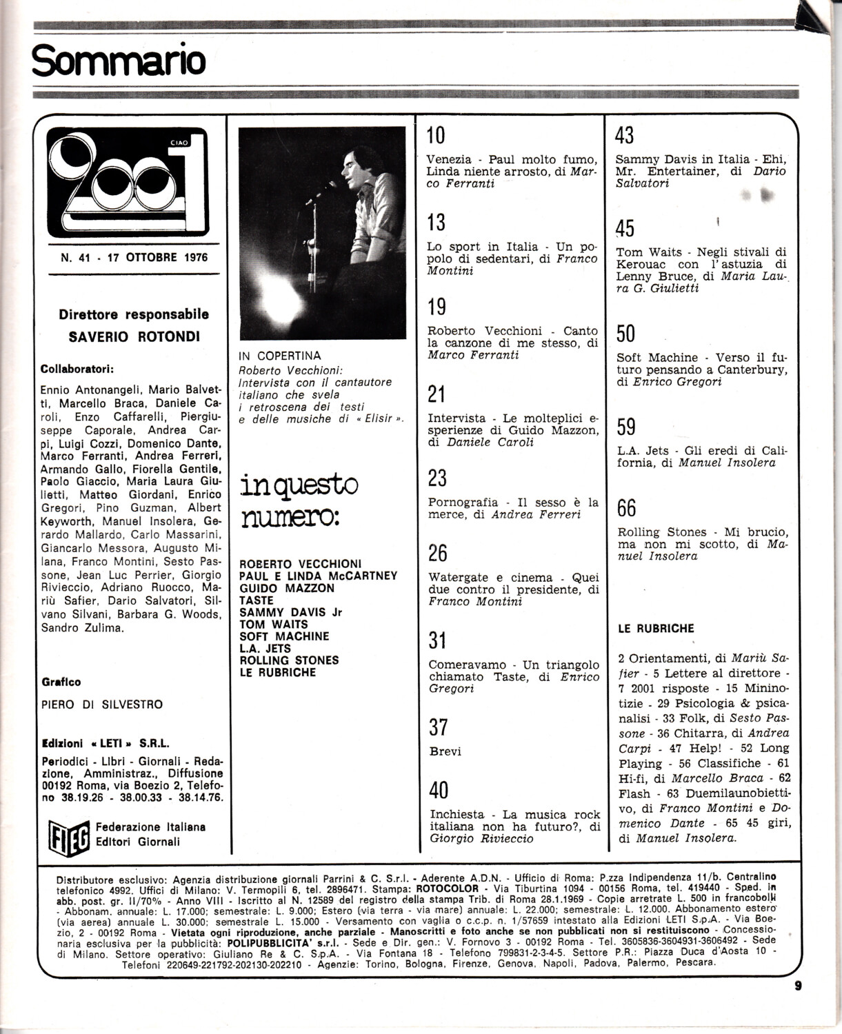 Rivista Ciao 2001 Anno 1976 n. 41 del 17 Ottobre – In copertina Roberto Vecchioni