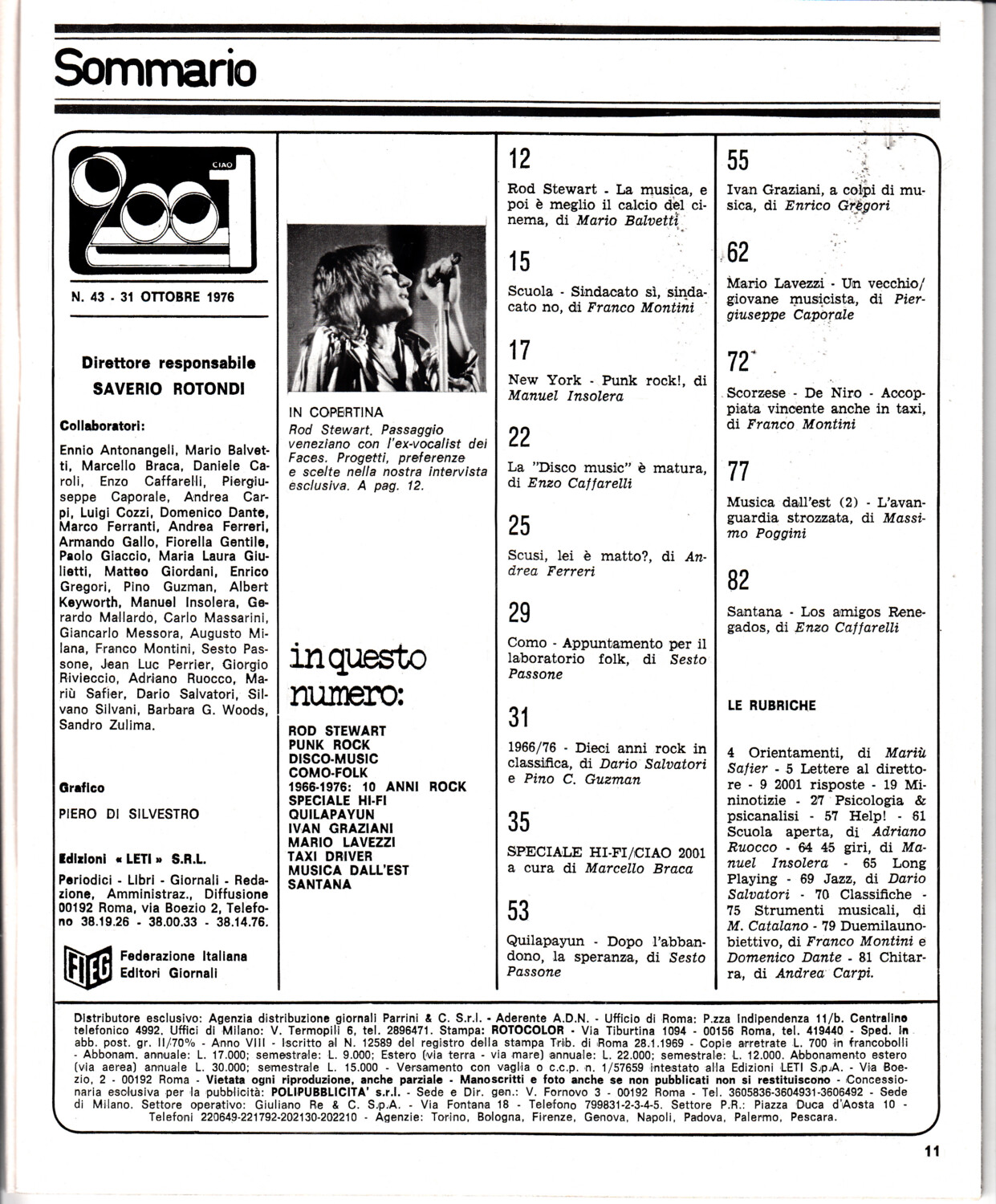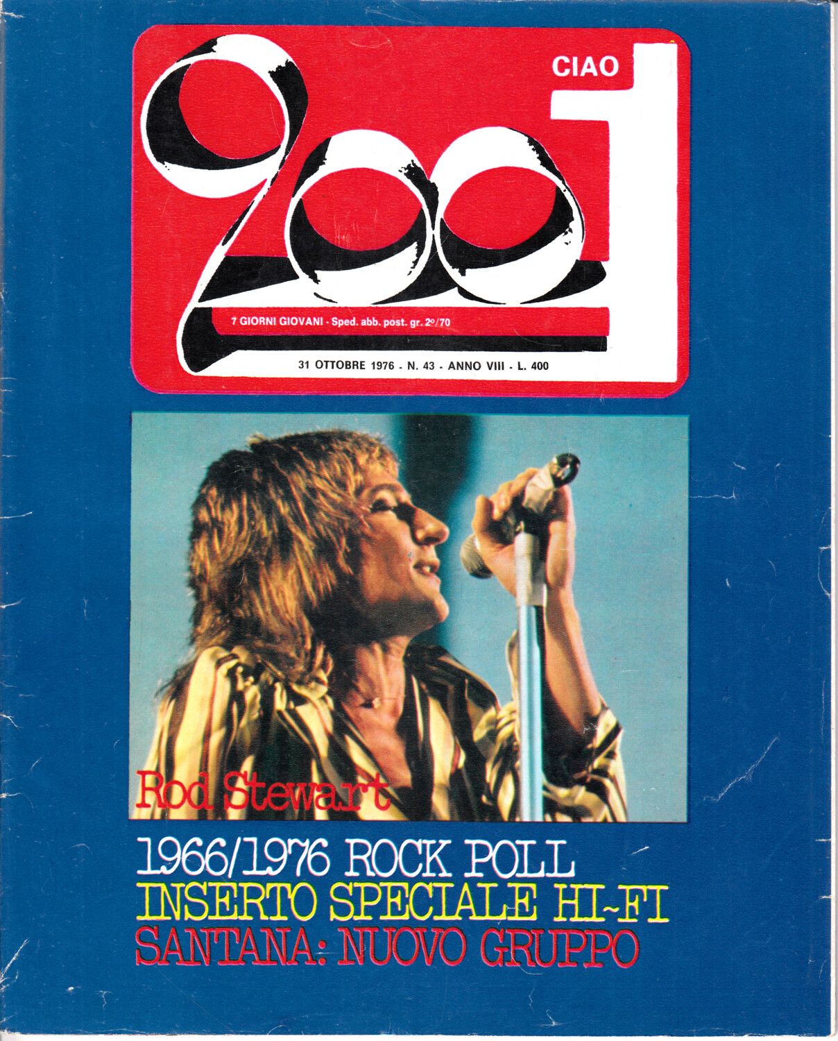 | Titolo: | Rivista Ciao 2001 Anno 1976 n. 43 del 31 Ottobre – In copertina Rod Stewart |