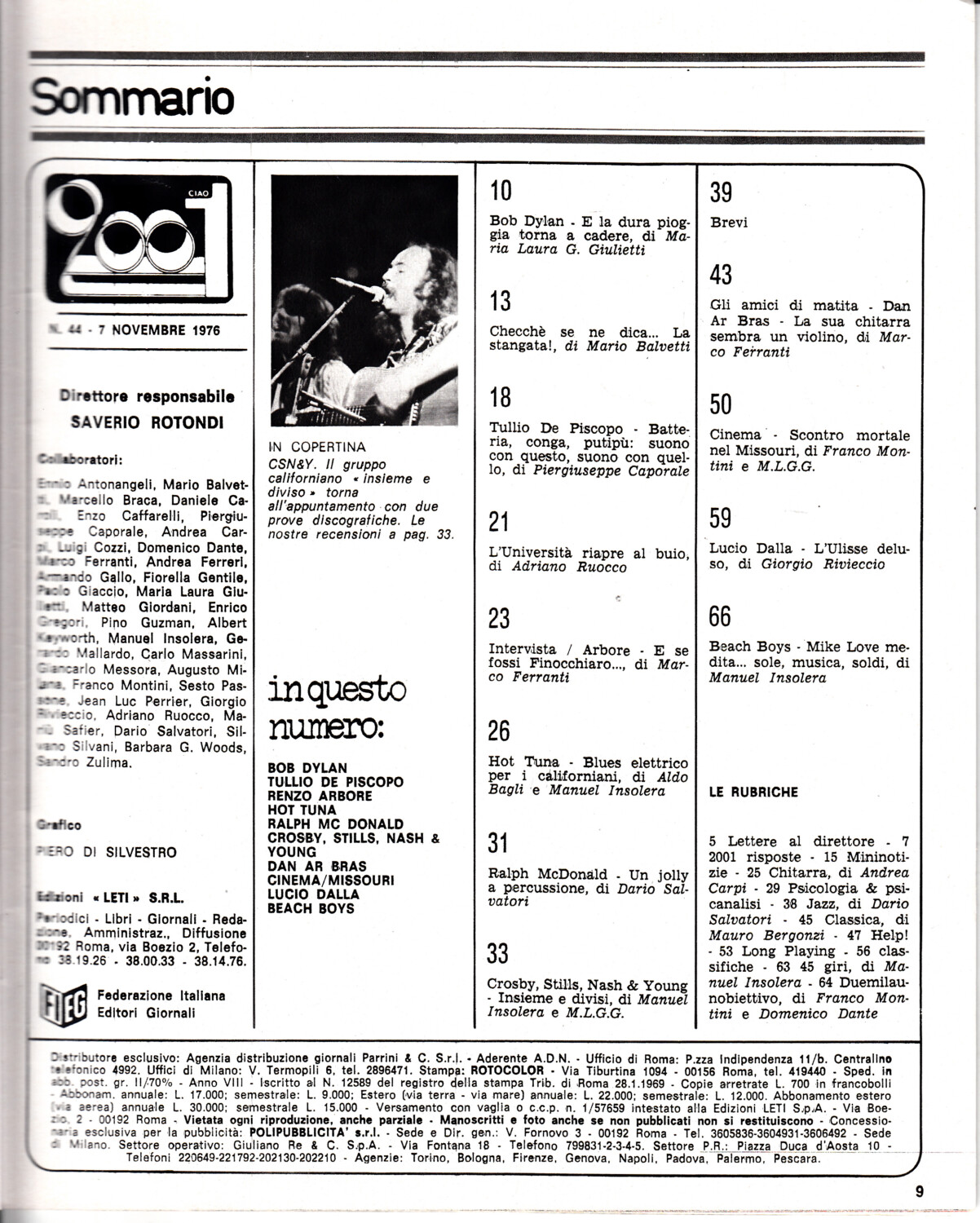 | Titolo: | Rivista Ciao 2001 Anno 1976 n. 44 del 7 Novembre – In copertina CSN&Y |
