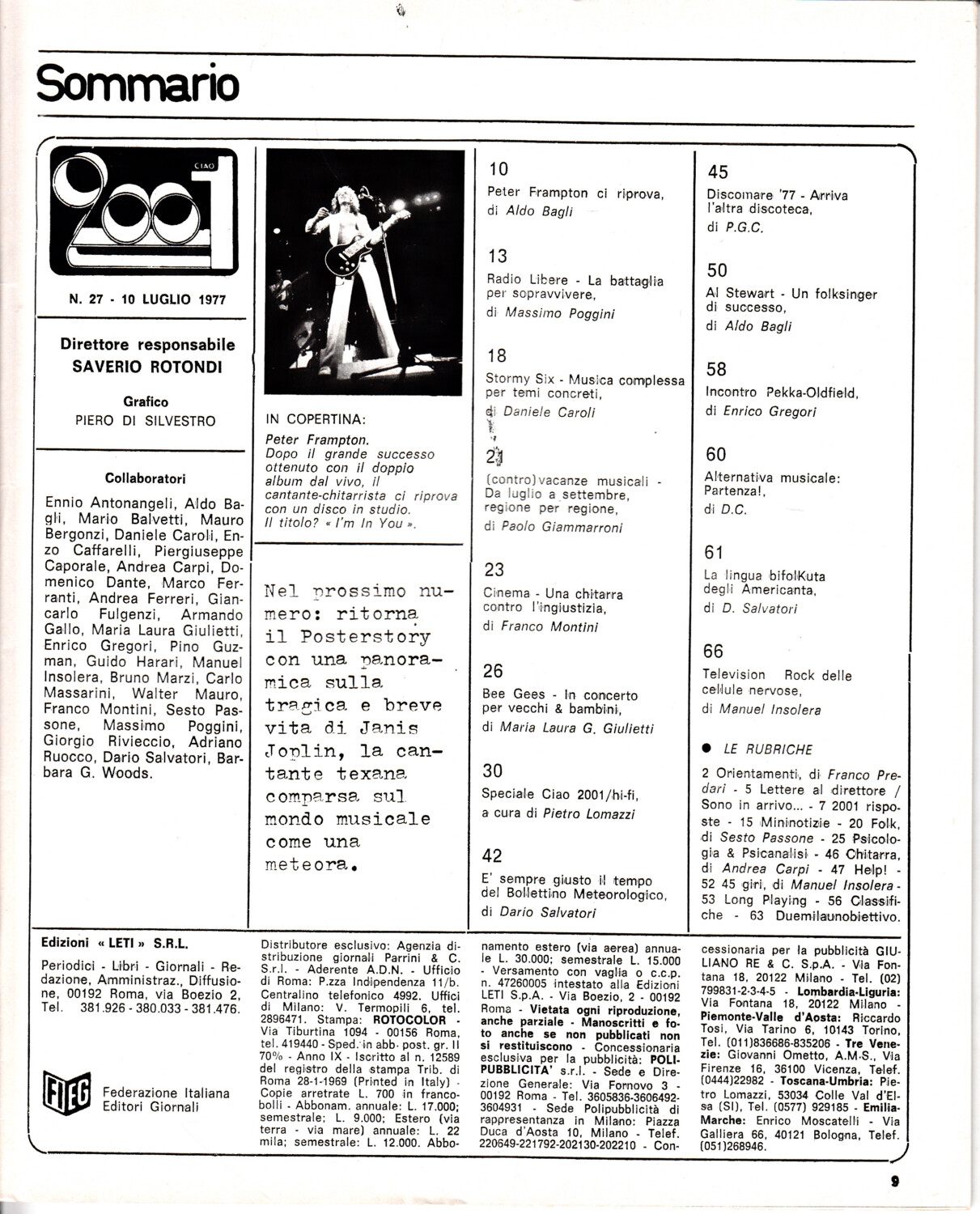 Rivista Ciao 2001 n. 27 del 10 Luglio 1977 – In copertina Peter Frampton