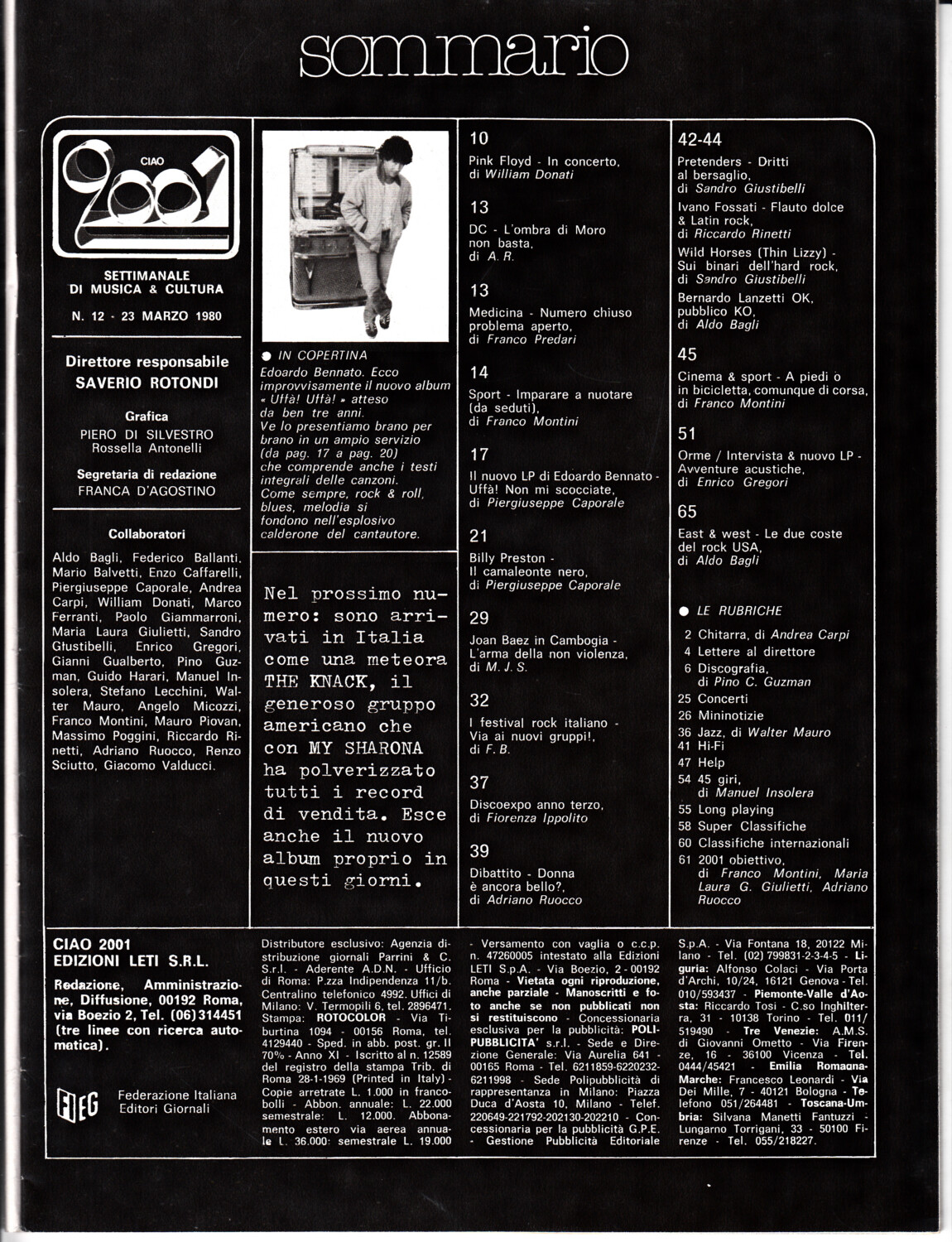 | Titolo: | Rivista Ciao 2001 n. 12 del 23 Marzo 1980 – In copertina Edoardo Bennato |