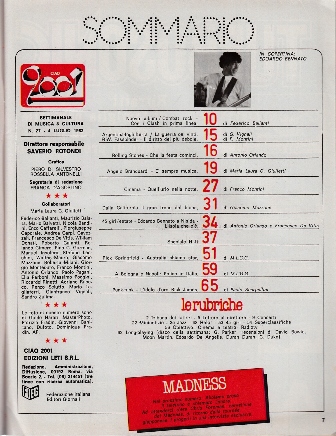 | Titolo: | Rivista Ciao 2001 n. 27 del 4 Luglio 1982 – In copertina Edoardo Bennato |