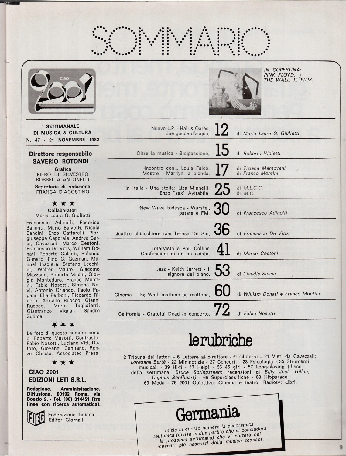 | Titolo: | Rivista Ciao 2001 n. 47 del 21 Novembre 1982 – In copertina Pink Floyd, The Wall il film |